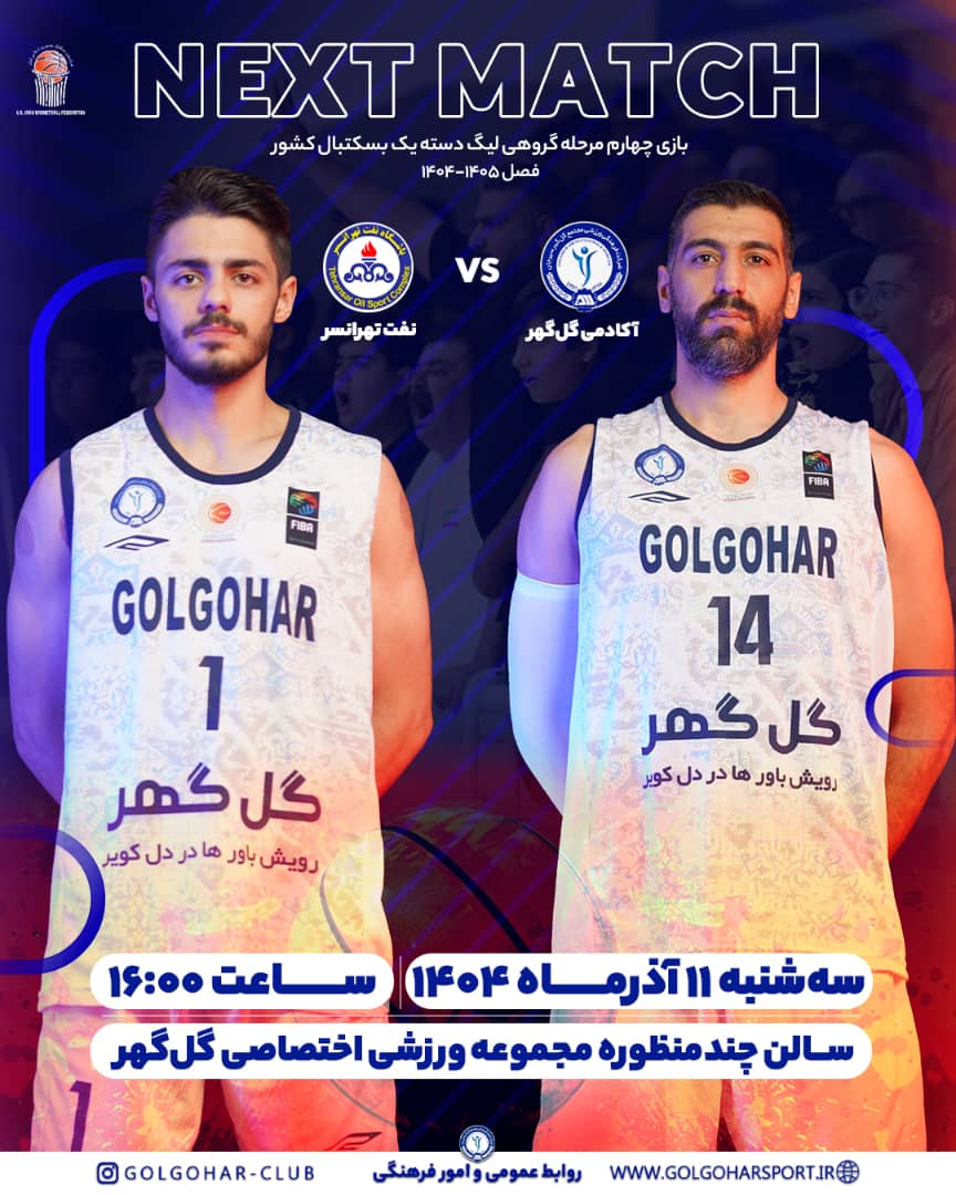 سهشنبه ۱۱ آذرماه ، ساعت ۱۶:۰۰ سالن چندمنظوره مجموعه ورزشی اختصاصی گلگهر با حضور هواداران و علاقهمندان ورزش مهیج بسکتبال در کنار هم برای موفقیت جوانان غیور گلگهر که به عنوان نماینده سیرجان، بار دیگر برای سربلندی نام این شهر پای به میدان رقابت خواهند گذاشته