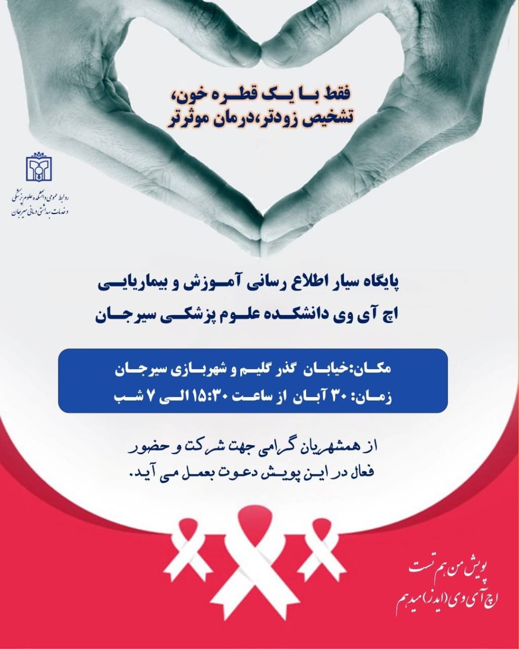 دانشکده علوم پزشکی سیرجان با راهاندازی یک پایگاه سیار، میزبان پویش «من هم تست اچآیوی میدهم» خواهد بود.