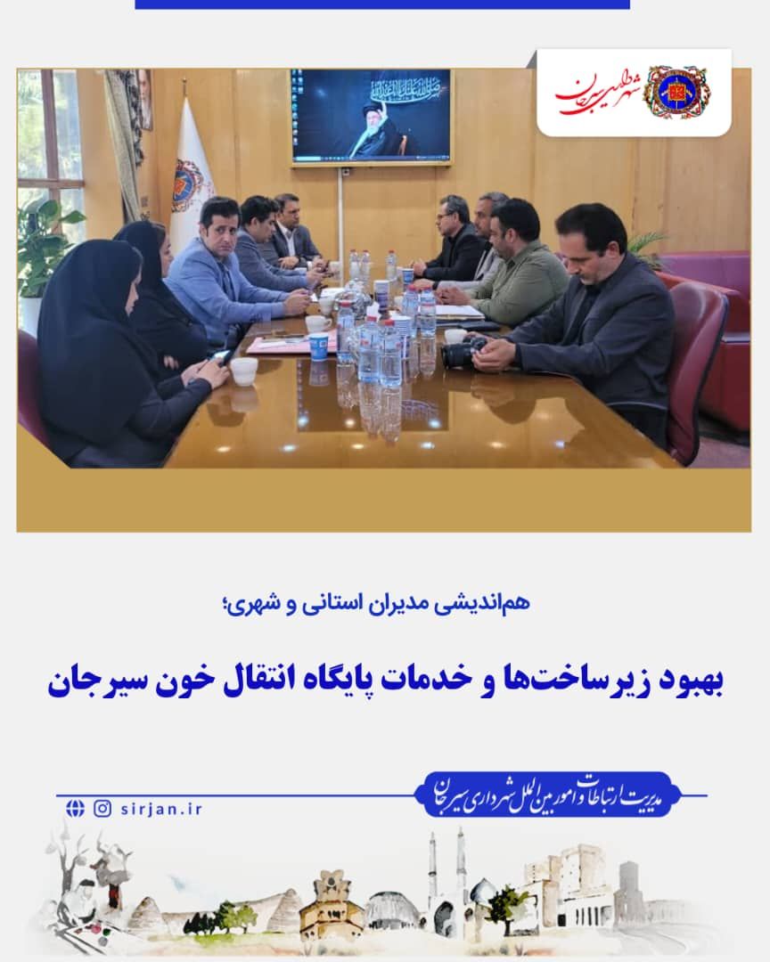 به گزارش مدیریت ارتباطات و امور بینالملل شهرداری سیرجان در این نشست، طرفین ضمن بررسی وضعیت کنونی پایگاه انتقال خون سیرجان، بر ضرورت بهروزرسانی تجهیزات، بهبود زیرساختها و توسعه فضای فیزیکی این مرکز تأکید کردند.
