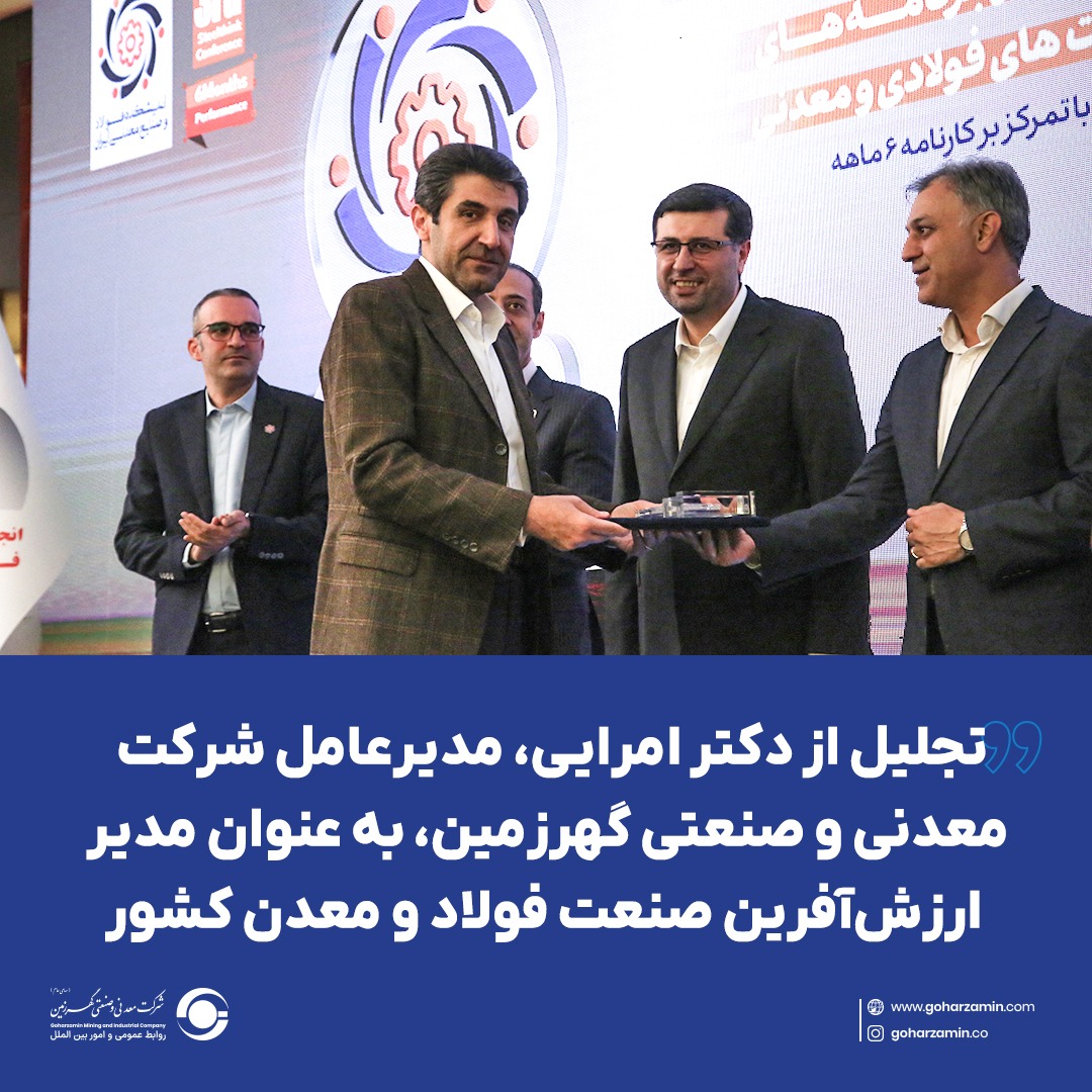 تجلیل از دکتر امرایی، مدیرعامل شرکت معدنی و صنعتی گهرزمین، به عنوان مدیر ارزشآفرین صنعت فولاد و معدن کشور