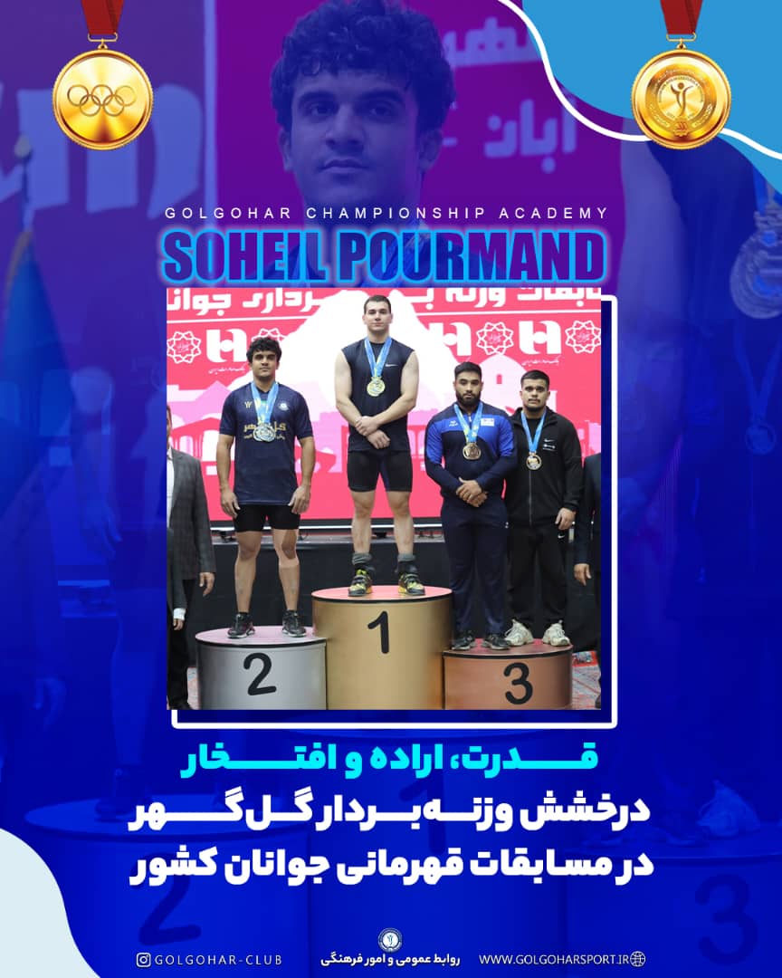 سهیل پورمند، وزنه‌بردار جوان و خوش‌آتیه باشگاه فرهنگی‌ورزشی گل‌گهر و عضو تیم استان کرمان، در رقابت‌های قهرمانی وزنه‌برداری جوانان کشور که از ۳ تا ۵ آبان‌ماه به میزبانی شهرکرد برگزار شد، توانست در دسته ۸۸ کیلوگرم به عنوان نایب‌قهرمان کشور دست یابد.