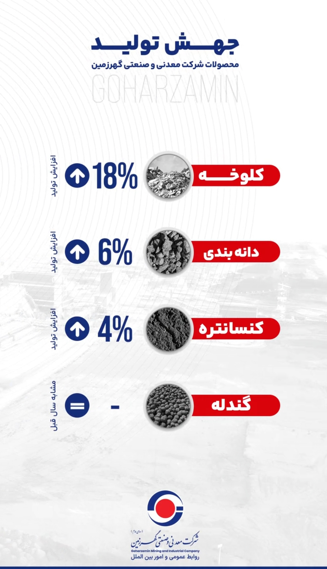 منبع : روابط عمومی و امور بین الملل شرکت صنعتی معدنی گهرزمین