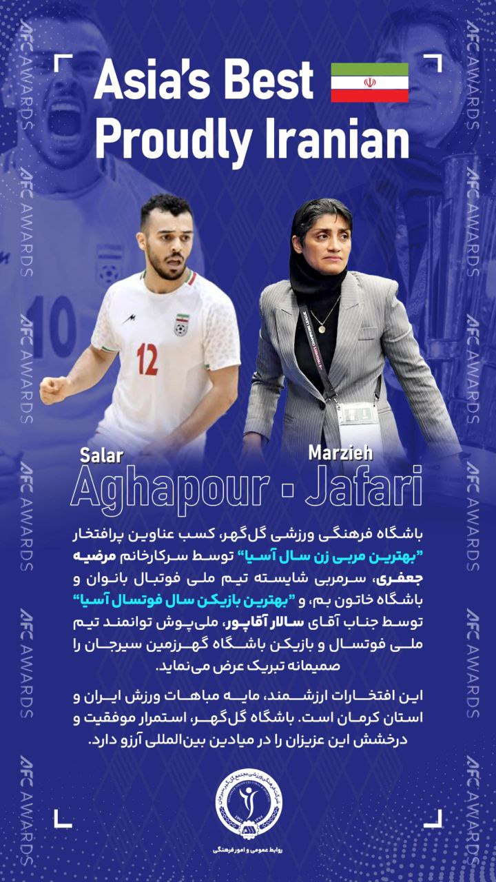 کسب عناوین پر افتخار بهترین مربی سال آسیا توسط سرکار خانم مرضیه جعفری